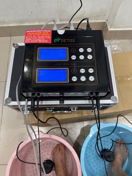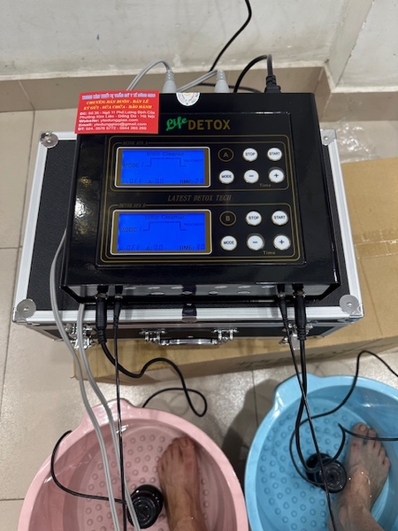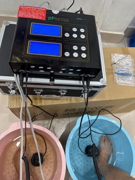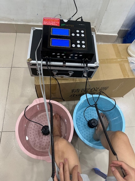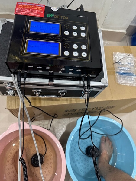 Chức năng ngâm chân thải độc có thể dùng nước thường, nước cất. Đối với mỗi loại nước hay nước ở các vùng khác nhau thì tốc độ truyền dẫn cũng khác nhau. Khi màn hình của máy hiển thị mức độ năng lượng E < 1.6 thì chúng ta bổ sung vào nước một lượng muối thích hợp để tăng tính truyền dẫn.