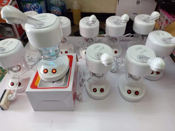 - Máy xông hơi mặt có cấu tạo cơ bản như máy đun nước. Sau khi cho nước vào bầu đựng, bật công tắc. Chờ khoảng 4-5 phút nước sôi. Hơi nước sẽ bốc lên theo cần phun đến da mặt.