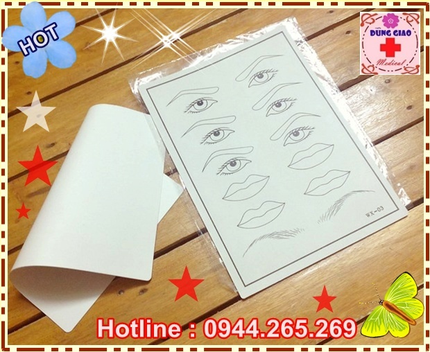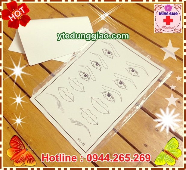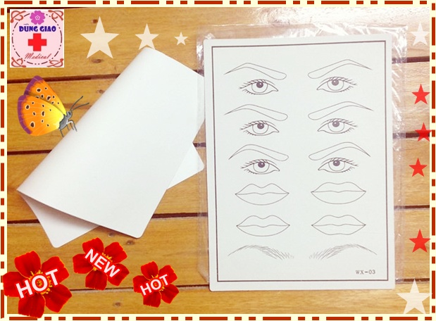 Sản phẩm bao gồm miếng da giả trơn , miếng da giả có in sẵn hình môi mày cho giúp bạn thao tác dễ dàng hơn.